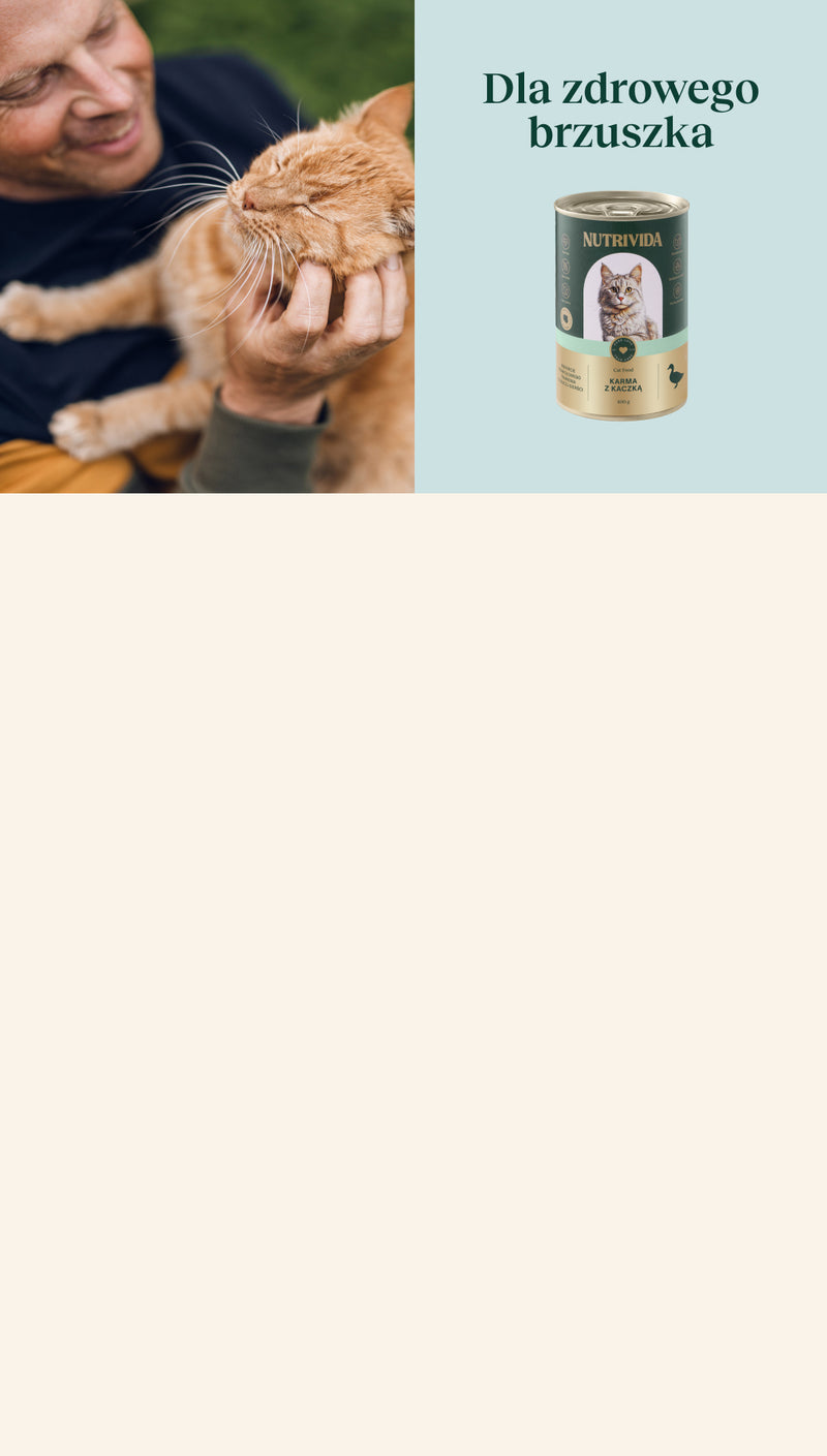 Nutrivida to karmy jakości premium w uczciwej cenie, bo dobra dieta nie powinna być luksusemPsy i koty to mięsożercy. Zamiast wypełniaczy dajemy wartościowe mięso i naturalne tłuszcze. Im mniej węglowodanów, tym lepsza kondycja i stabilniejsza energia.